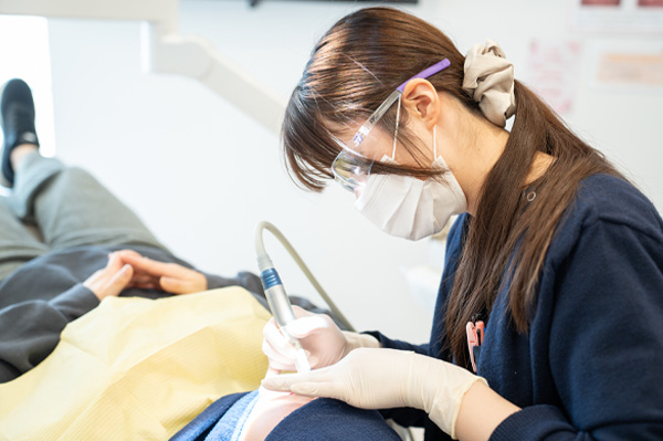 様々な専用機器を使用して、虫歯や歯周病の最大の原因である「バイオフィルム(歯の表面についた細菌のかたまり)」や歯垢・歯石を除去していきます。あくまで歯のクリーニングなので、ドリルなどで歯を削ることはありません。