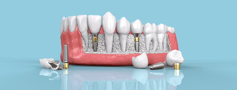 インプラント治療とは、歯が失われてしまった部分に人工の歯を埋入する治療のことです。人工の歯根を顎の骨の中に埋め込み、その上に人工の歯を固定します。